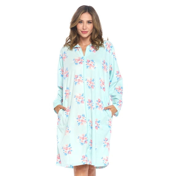 Casual Nights Women's Printed Zipper Front Micro Fleece Robe Duster