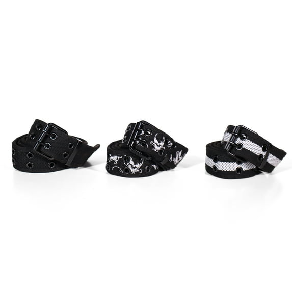 Hero image 0 of Casual Unisex Cotton Canvas Belt - Double Hole Grommet Web Belt for Men and Women -3 Pack (Blk/Skull/2Tone, X-Large), 0 of 3