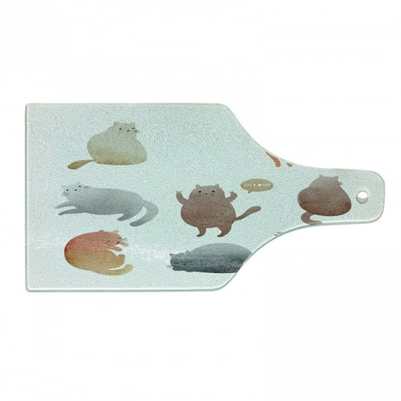 Hero image 0 of Cat Lover Cutting Board, Colorful Watercolor Sleeping Paw Licking Happy Playful and Content Cats Pets, Decorative Tempered Glass Cutting and Serving Board, Wine Bottle Shape, Multicolor, by Ambesonne, 0 of 1