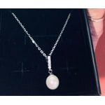 Cate & Chloe Gabrielle 18k White Gold Plated Shell Pearl Pendant Necklace Adorned with Swarovski® Crystals for Women. Elevate your style with the Gabrielle Necklace, a stunning piece that embodies luxury and elegance. This exquisite necklace is meticulously crafted from 18k white gold-plated brass, featuring dazzling Swarovski® crystals and a lustrous shell pearl that enhances any wardrobe choice. Shell pearls will keep their color and shine and will not be affected by sweat and perfume. They are more durable than cultured and freshwater pearls. The elegant design of this necklace makes it the perfect gift for a loved one, adding a touch of sophistication to both casual and formal looks. Designed with superior craftsmanship, the Gabrielle Necklace is a timeless statement of beauty and elegance.