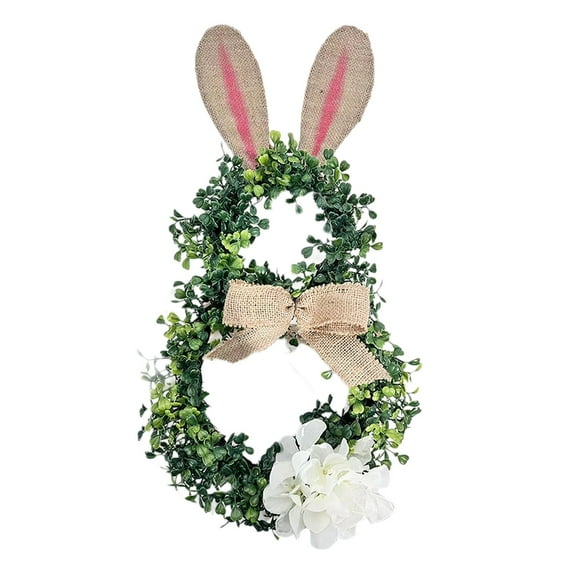 Hero image 0 of Cbcbtwo Easter Wreath, 17.7in Easter Bunny Spring Wreath with Ribbon Bow Easter Bunny Welcome Door Sign LED Wreath for Front Door Wall Decoration Easter Rabbit Garland Bunny-Shaped Hydrangea Wreath, 0 of 6