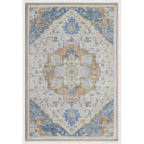 Hero image 0 of Center Medallion Ivory 2 ft. x 3 ft. Machine Washable Traditional Indoor Area Rug, 0 of 5