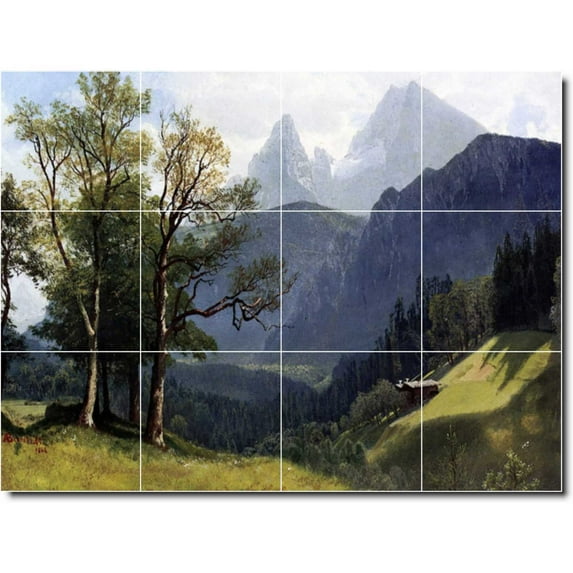 Ceramic Tile Mural-Albert Bierstadt Landscapes Painting 107. 32" w x 24" h using (12) 8 x 8 ceramic tilesCeramic Tile Mural Albert Bierstadt Landscapes Painting 107 32 w x 24 h using 12 8 x 8 ceramic tilesCeramic Tile Mural Albert Bierstadt Landscapes Painting 107 17 w x 12 75 h using 12 4 25 x 4 25 ceramic tilesCeramic Tile Mural Albert Bierstadt Landscapes Painting 107 48 w x 36 h using 12 12 x 12 ceramic tiles