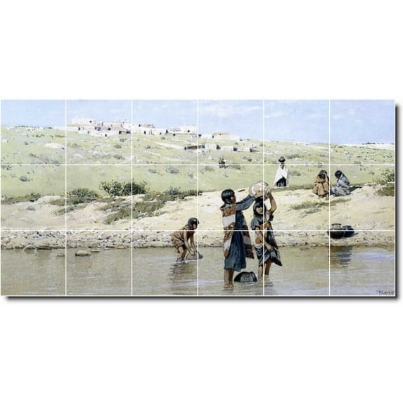 Ceramic Tile Mural-Henry Farny Indians Floor Tile Mural 2. 36" w x 18" h using (18) 6 x 6 ceramic tilesCeramic Tile Mural Henry Farny Indians Floor Tile Mural 2 36 w x 18 h using 18 6 x 6 ceramic tilesCeramic Tile Mural Henry Farny Indians Floor Tile Mural 2 48 w x 24 h using 18 8 x 8 ceramic tilesCeramic Tile Mural Henry Farny Indians Floor Tile Mural 2 72 w x 36 h using 18 12 x 12 ceramic tilesCeramic Tile Mural Henry Farny Indians Floor Tile Mural 2 25 5 w x 12 75 h using 18 4 25 x 4 25 ceramic tiles