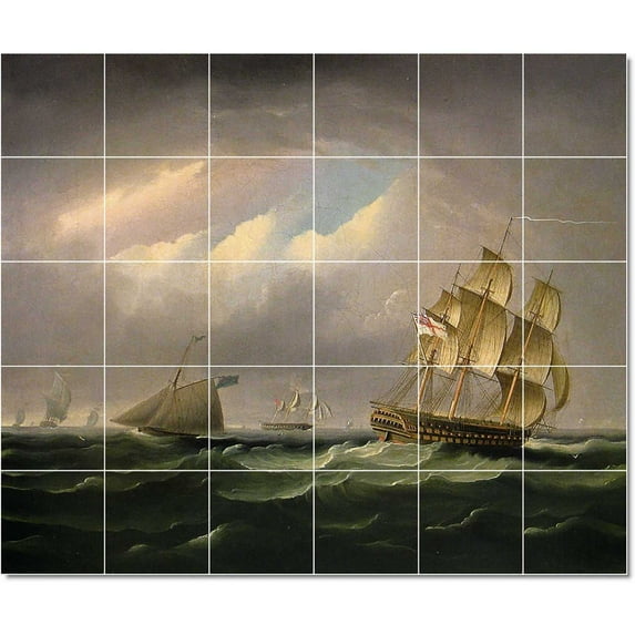 Ceramic Tile Mural-James Buttersworth Ships Tile Mural Traditional Construction. 72" w x 60" h using (30) 12 x 12 ceramic tilesCeramic Tile Mural James Buttersworth Ships Tile Mural Traditional Construction 72 w x 60 h using 30 12 x 12 ceramic tilesCeramic Tile Mural James Buttersworth Ships Tile Mural Traditional Construction 48 w x 40 h using 30 8 x 8 ceramic tilesCeramic Tile Mural James Buttersworth Ships Tile Mural Traditional Construction 25 5 w x 21 25 h using 30 4 25 x 4 25 ceramic tilesCeramic Tile Mural James Buttersworth Ships Tile Mural Traditional Construction 36 w x 30 h using 30 6 x 6 ceramic tiles