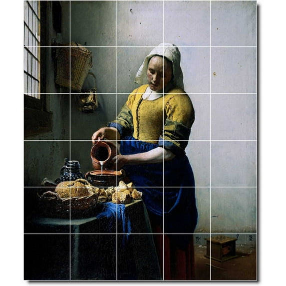 Ceramic Tile Mural-Johannes Vermeer Women Painting 134. 21.25" w x 25.5" h using (30) 4.25 x 4.25 ceramic tilesCeramic Tile Mural Johannes Vermeer Women Painting 134 21 25 w x 25 5 h using 30 4 25 x 4 25 ceramic tilesCeramic Tile Mural Johannes Vermeer Women Painting 134 40 w x 48 h using 30 8 x 8 ceramic tilesCeramic Tile Mural Johannes Vermeer Women Painting 134 60 w x 72 h using 30 12 x 12 ceramic tiles