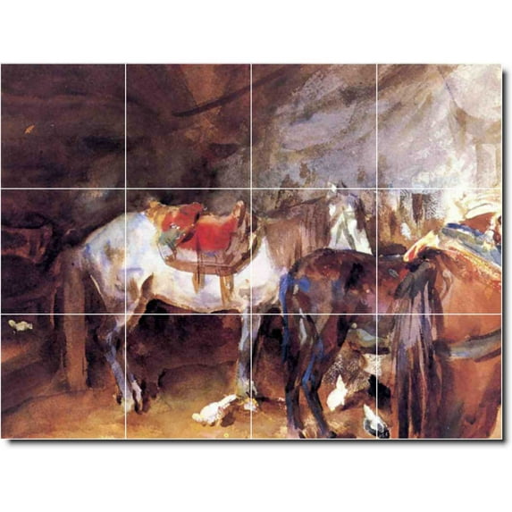 Ceramic Tile Mural-John Sargent Horses 26. 24" w x 18" h using (12) 6 x 6 ceramic tilesCeramic Tile Mural John Sargent Horses 26 24 w x 18 h using 12 6 x 6 ceramic tilesCeramic Tile Mural John Sargent Horses 26 17 w x 12 75 h using 12 4 25 x 4 25 ceramic tilesCeramic Tile Mural John Sargent Horses 26 48 w x 36 h using 12 12 x 12 ceramic tilesCeramic Tile Mural John Sargent Horses 26 32 w x 24 h using 12 8 x 8 ceramic tiles