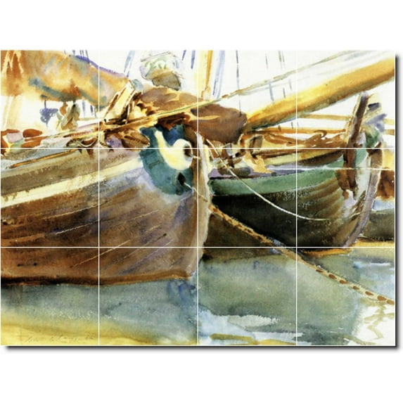 Ceramic Tile Mural-John Sargent Waterfront Painting 291. 48" w x 36" h using (12) 12 x 12 ceramic tilesCeramic Tile Mural John Sargent Waterfront Painting 291 48 w x 36 h using 12 12 x 12 ceramic tilesCeramic Tile Mural John Sargent Waterfront Painting 291 17 w x 12 75 h using 12 4 25 x 4 25 ceramic tilesCeramic Tile Mural John Sargent Waterfront Painting 291 32 w x 24 h using 12 8 x 8 ceramic tilesCeramic Tile Mural John Sargent Waterfront Painting 291 24 w x 18 h using 12 6 x 6 ceramic tiles