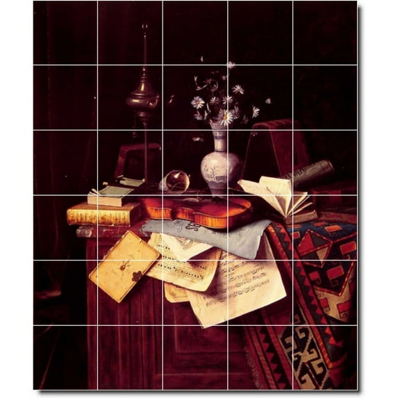 Ceramic Tile Mural-William Harnett Still Life 15. 21.25" w x 25.5" h using (30) 4.25 x 4.25 ceramic tilesCeramic Tile Mural William Harnett Still Life 15 21 25 w x 25 5 h using 30 4 25 x 4 25 ceramic tilesCeramic Tile Mural William Harnett Still Life 15 30 w x 36 h using 30 6 x 6 ceramic tilesCeramic Tile Mural William Harnett Still Life 15 40 w x 48 h using 30 8 x 8 ceramic tilesCeramic Tile Mural William Harnett Still Life 15 60 w x 72 h using 30 12 x 12 ceramic tiles