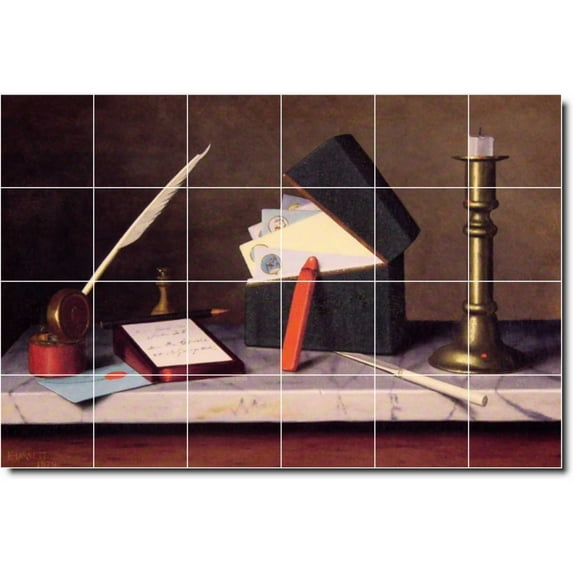 Ceramic Tile Mural-William Harnett Still Life Kitchen Tile Mural 3. 72" w x 48" h using (24) 12 x 12 ceramic tilesCeramic Tile Mural William Harnett Still Life Kitchen Tile Mural 3 72 w x 48 h using 24 12 x 12 ceramic tilesCeramic Tile Mural William Harnett Still Life Kitchen Tile Mural 3 25 5 w x 17 h using 24 4 25 x 4 25 ceramic tilesCeramic Tile Mural William Harnett Still Life Kitchen Tile Mural 3 36 w x 24 h using 24 6 x 6 ceramic tilesCeramic Tile Mural William Harnett Still Life Kitchen Tile Mural 3 48 w x 32 h using 24 8 x 8 ceramic tiles