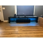 Shipping, arrives in 3+ daysClearance 75" LED TV Stand with Power Outlet for up 85" TVs, Modern Large Entertainment Center TV Console Table with Long Open Shelf $139.99 Was $220.00