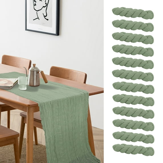 Cheesecloth Table Runner 10ft Gauze Boho Rustic Sage Green Cheese Cloth Table Runner for Baby Shower Decoration Wedding Easter Summer Table Runner 12pcs