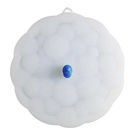 Silicone universal lid creates an airtight seal with gentle push on blue knob,Locks in moisture for better flavor and aroma and stops messy and dangerous splatters and spills,Universal Lid 9-inch diameter fits 8-inch or smaller pots, pans and bowls,High heat resistant silicone is microwave safe,Dishwasher safe and easy to store
