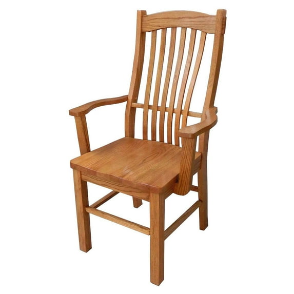 Comfortably curved arms, a traditional wheat back, and a generous seat make this Chelsea Home Backwood Dining Chair perfect for either end of your table. This solid wood dining arm chair is available in finish options and boasts a contoured seat plus straight legs with stability stretchers.