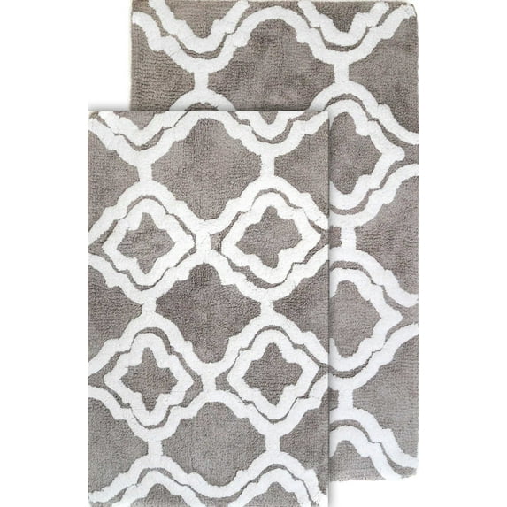 Chesapeake Double Quatrefoil 2pc Lunar Grey Bath Rug Set (21"x34" & 24"x40")