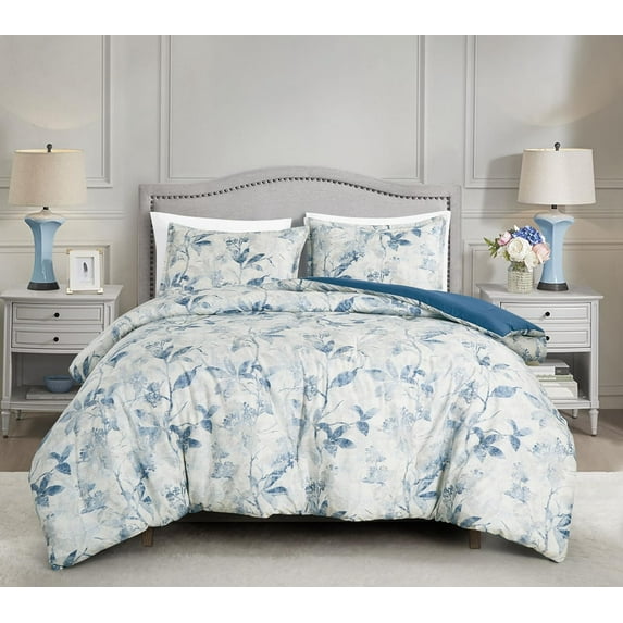 Hero image 0 of Chezmoi Collection Monica 2-Piece Boho Floral Comforter Set, Twin, Blue Gray White Tropical Flower Textured Printed Microfiber Lightweight Bedding Set, 0 of 9