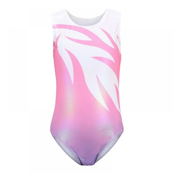Hero image 0 of Children Girls Sleeveless Ballet Practice Dance Wear Gymnastics Bright Color Jumpsuit, Pink & White 5-6Y, 0 of 11