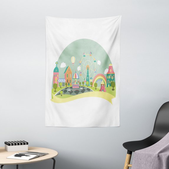 Children Tapestry, Colorful Cartoon of Amusement Park Rainbow Air Balloon Ferris Wheel Carousel Fun, Wall Hanging for Bedroom Living Room Dorm Decor, 40W X 60L Inches, Multicolor, by AmbesonneChildren Tapestry Colorful Cartoon Amusement Park Rainbow Air Balloon Ferris Wheel Carousel Fun Wall Hanging Bedroom Living Room Dorm Decor 40W X 60LChildren Tapestry Colorful Cartoon Amusement Park Rainbow Air Balloon Ferris Wheel Carousel Fun Wall Hanging Bedroom Living Room Dorm Decor 60W X 80L