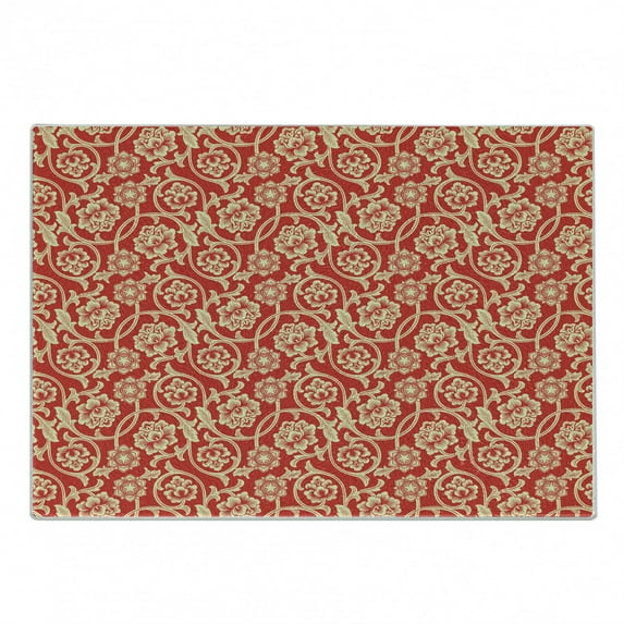 Hero image 0 of Chinese Cutting Board, Oriental Blossoms with Tangled Curly Leaves Antique Design of Flowers, Decorative Tempered Glass Cutting and Serving Board, Small Size, Vermilion Beige, by Ambesonne, 0 of 1
