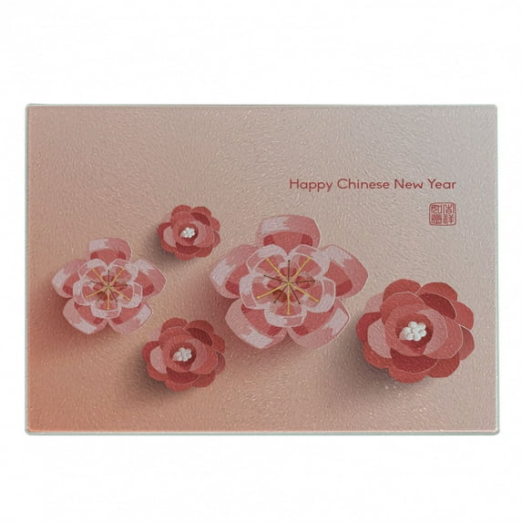 Chinese New Year Cutting Board, Blossoming Ornamental Flowers in Pinkish Colors Zodiac Theme, Decorative Tempered Glass Cutting and Serving Board, Small Size, Coral and Dark Coral, by AmbesonneChinese New Year Cutting Board Blossoming Ornamental Flowers Pinkish Colors Zodiac Theme Decorative Tempered Glass Serving Small Size Coral Dark CoraChinese New Year Cutting Board Blossoming Ornamental Flowers Pinkish Colors Zodiac Theme Decorative Tempered Glass Serving Large Size Coral Dark CoraChinese New Year Cutting Board Blossoming Ornamental Flowers Pinkish Colors Zodiac Theme Tempered Glass Serving Wine Bottle Shape Coral Dark Coral Am