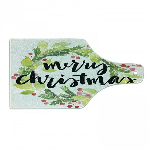 Christmas Cutting Board, Watercolor Painting Style Christmas Wreath and Hand Lettering Mistletoe, Tempered Glass Cutting and Serving Board, Wine Bottle Shape, Black Green White, by AmbesonneChristmas Cutting Board Watercolor Painting Style Wreath Hand Lettering Mistletoe Tempered Glass Serving Wine Bottle Shape Black Green White AmbesonnChristmas Cutting Board Watercolor Painting Style Christmas Wreath Hand Lettering Mistletoe Decorative Tempered Glass Cutting Serving Board Small SizChristmas Cutting Board Watercolor Painting Style Wreath Hand Lettering Mistletoe Decorative Tempered Glass Serving Large Size Black Green White Ambe