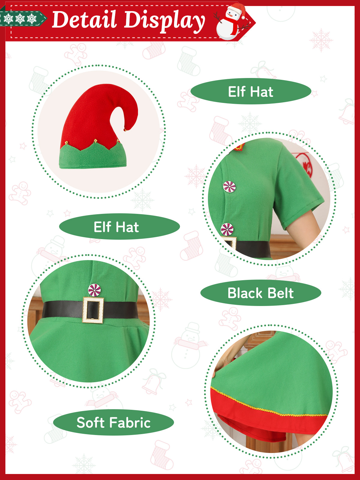 Christmas Elf Costumes Parent-Child Holiday Green Elf Outfits Xmas Family Matching Clothes for Kids Girls Boys Women Men
