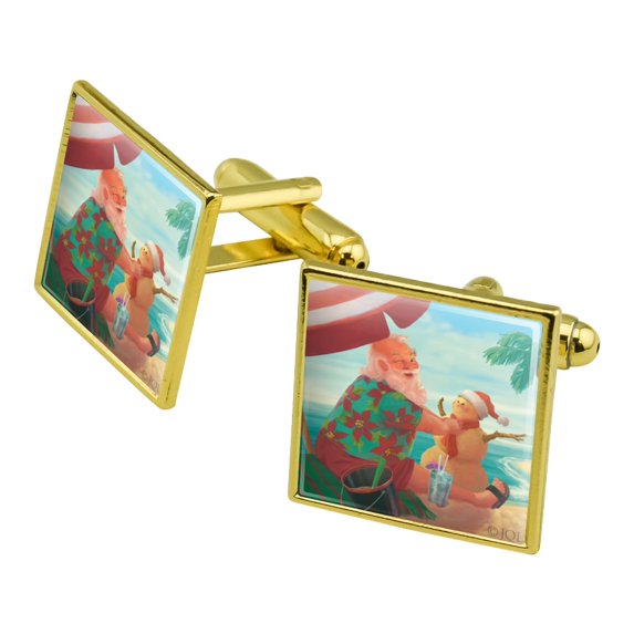 Hero image 0 of Christmas Holiday Santa Claus Beach Vacation Square Cufflink Set - Silver or Gold, 0 of 6