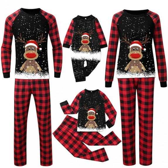 Hero image 0 of Christmas Pajamas for Family Funny Elk Deer Graphic Matching Pjs Sets Soft Red and Black Plaid Long Sleeve Sleepwear, 0 of 4