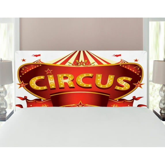 Circus Headboard, Circus Sign Baroque Style Big Top Enjoyment Theme Marquee Nightlife Retro, Upholstered Decorative Metal Bed Headboard with Memory Foam, Full Size, Yellow White Red, by AmbesonneCircus Headboard Sign Baroque Style Big Top Enjoyment Theme Marquee Nightlife Retro Upholstered Decorative Metal Bed Headboard Memory Foam Full Size