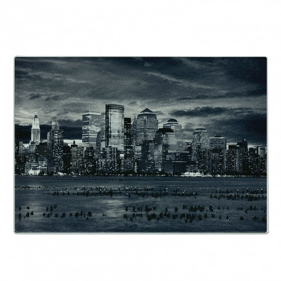 Hero image 0 of City Cutting Board, Dramatic View of New York Skyline from the Jersey Side Clouds Buildings Urban, Decorative Tempered Glass Cutting and Serving Board, Small Size, Blegrey Black White, by Ambesonne, 0 of 1
