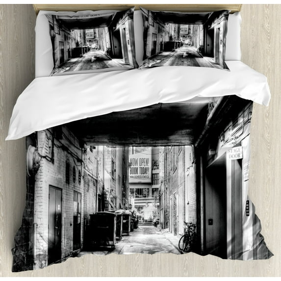 City Duvet Cover Set King Size, Caution Please Slow Down Sign on Passage Town Old Fashion Urban District Scenery, Decorative 3 Piece Bedding Set with 2 Pillow Shams, Black and White, by AmbesonneCity Duvet Cover Set King Size Caution Please Slow Sign Passage Town Old Fashion Urban District Scenery Decorative 3 Piece Bedding Set 2 Pillow ShamsCity Duvet Cover Set Twin Size Caution Please Slow Sign Passage Town Old Fashion Urban District Scenery Decorative 2 Piece Bedding Set 1 Pillow ShamCity Duvet Cover Set Queen Size Caution Please Slow Sign Passage Town Old Fashion Urban District Scenery Decorative 3 Piece Bedding Set 2 Pillow Sham
