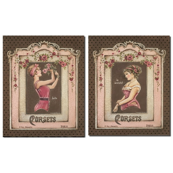 Classic Corsets; Lovely, Vintage French Pink Corset Signs; Two 11x14 Poster Prints