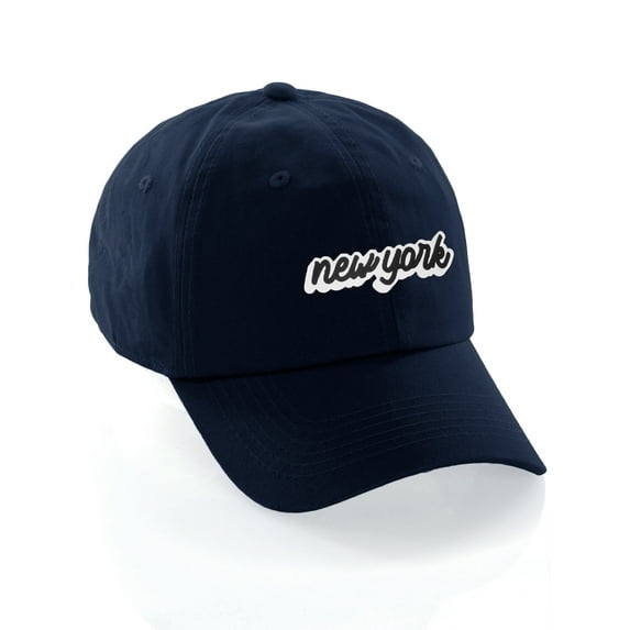 Hero image 0 of Classic Unstructured USA Cities Baseball Dad Hat 3D Raised PVC Letters Cap, New York Navy, White Black, 0 of 5