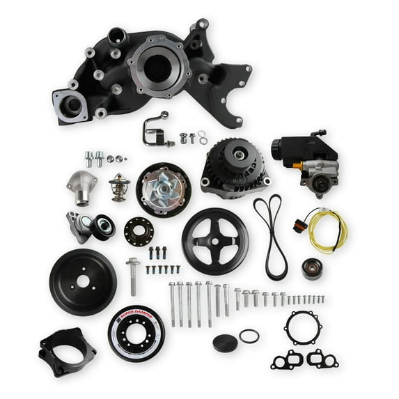 - Complete Kit: Comes with all necessary accessories including an alternator, power steering pump with baffled reservoir, SFI certified damper with hard anodized billet crank pulley, belt, and pulleys.