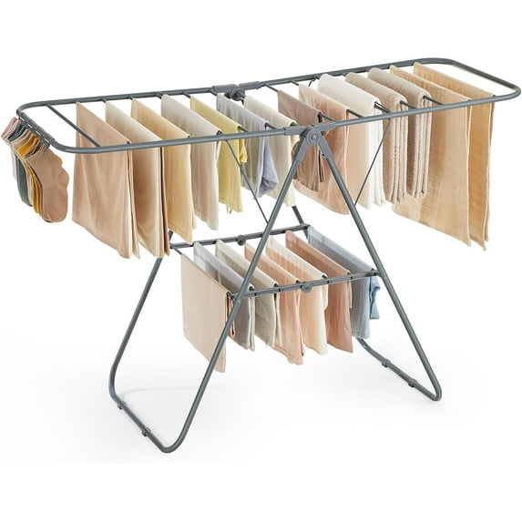 Clothes Drying Rack, with Sock Clips, Metal Laundry Rack, Foldable, Space-Saving, Free-Standing Airer, with 2 Height-Adjustable Gullwings, Indoor Outdoor Use, Silver and Blue ULLR52BUClothes Drying Rack Sock Clips Metal Laundry Rack Foldable Space Saving Free Standing Airer 2 Height Adjustable Gullwings Indoor Outdoor Use Silver BClothes Drying Rack Sock Clips Metal Laundry Rack Foldable Space Saving Free Standing Airer 2 Height Adjustable Gullwings Indoor Outdoor Use Silver B
