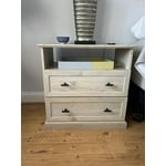 Lack of storage in your bedroom will no longer be a problem after purchasing the Chatham 2-Drawer White Oak Nightstand by Walker Edison. With two drawers for closed storage and one open storage shelf, you will have many options to store items within reach of your bed. Wood accents around each drawer bring a relaxed vibe no matter where it is placed. The side table also makes a great end table for living room storage and a place to display lamps, house plants, and other decor.