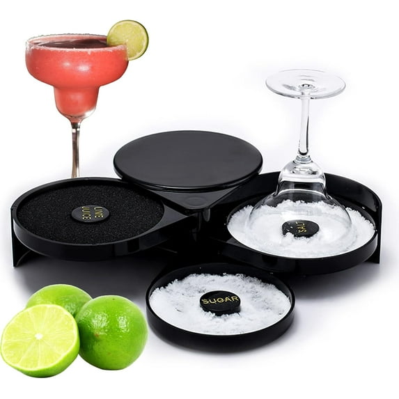 - Bar Glass Rimmer: Made of food safe ABS plastic,3-tier black bar glass rimmer with sponge,ideal for Margaritas, Bloody Marys and Gimlets etc.
