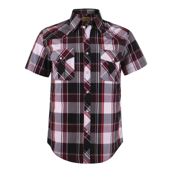 Hero image 0 of Coevals Club Men's Western Plaid Pearl Snap Shirts (Red Brown Black #20 Large), 0 of 4
