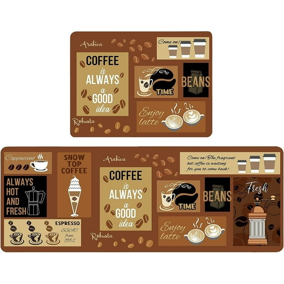 Hero image 0 of Coffee Kitchen Rugs Set 2 Piece,Kitchen Rugs and Mats Non Skid Washable Runner,Farmhouse Kitchen Sink Rugs Seasonal Holiday Party Low-Profile Mats for Home Kitchen(Brown 17"x48"+17"x24"), 0 of 6