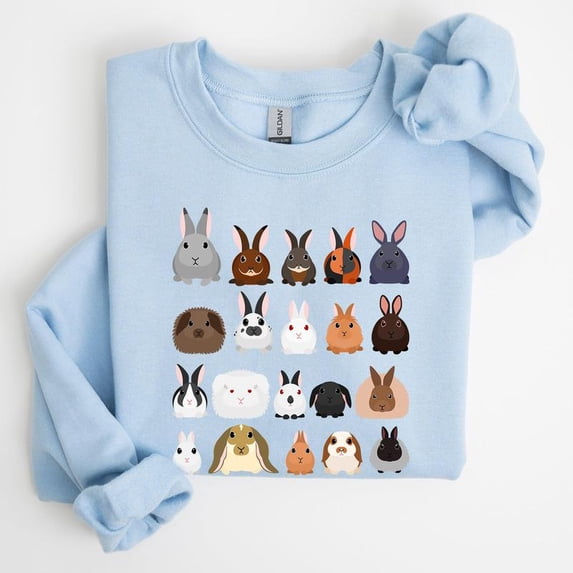Colorful Rabbit Breeds, Rabbits In A Row, Easter Sweatshirt, Women'sColorful Rabbit Breeds Rabbits In A Row Easter Sweatshirt Women s