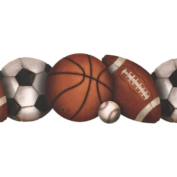 Concord Wallcoverings Wallpaper Border Sport Pattern Baseball Basketball Football Soccer for Boys Room, Brown Blue Green Orange Yellow, 9.5 Inches by 15 Feet BZ9433BD