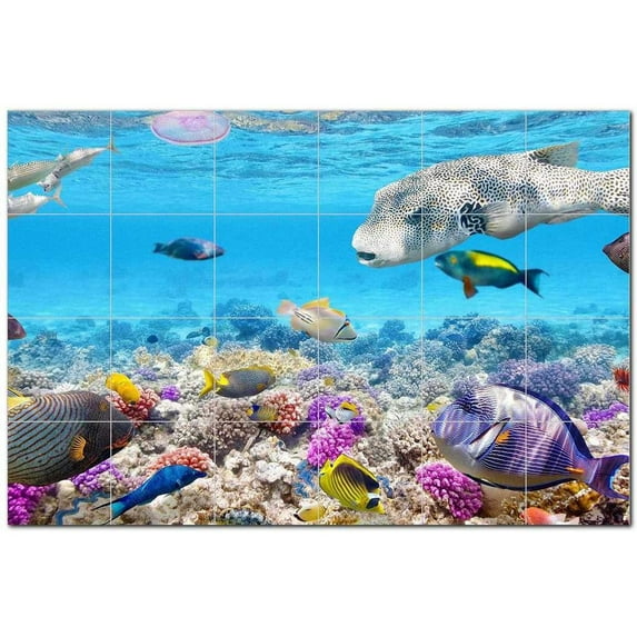 Coral Fish Underwater Ceramic Tile Mural Kitchen Backsplash Bathroom Shower, 403
