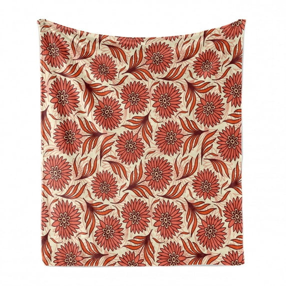 Hero image 0 of Coral Soft Flannel Fleece Throw Blanket, Nostalgic Pattern with Gerbera Remembering the Freshness of Summer, Cozy Plush for Indoor and Outdoor Use, 60" x 80", Dark Coral Vermilion, by Ambesonne, 0 of 6