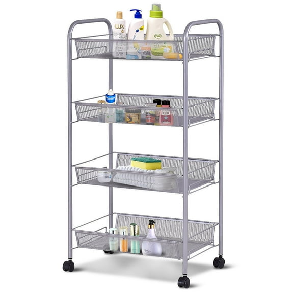 Costway 4 Tier Storage Rack Trolley Cart Home Kitchen Organizer Utility Baskets Silver