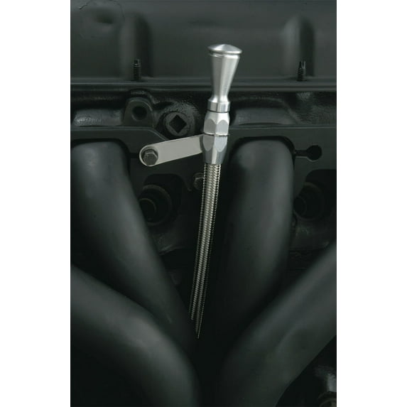 Oil Dipstick - Midnight Series - Flexible Engine Dipstick - Midnight Series - Flexible Engine Dipstick - 502 Chevy Big Block - Black Stainless Steel Housing - Black Fittings. Features: Black Stainless Steel Housing. Slim Design Allows Mounting Inside Headers. For Use w/Factory Or Sanderson Cast Manifolds. E-Z Read Flexible Inner Dipstick Measuring Cable. For Accurate Measure Of Engine Oil. Made In The U.S.A.. Lifetime Warranty. Quality.. Plain & Simple...It's that easy. Lokar bases their entire business on the simple ideals of manufacturing a quality product and providing quality service, before and after the sale. We will not compromise that ideal. Our commitment is to provide the automotive aftermarket enthusiast with the best possible products and service. We pride ourselves in the availability, reliability and versatility of all our products. When Lokar began it's operation in 1988, the goals were simply to make a better product than what was available, and to design products which would be simpler to install, more versatile in application and affordable all at the same time. We continue to strive for those goals every day. We have been able to maintain quality control over the years by becoming more self-sufficient in the manufacturing process. Our facility houses nearly all of the manufacturing processes necessary to guarantee our customers a quality product. This includes CNC mills and lathes operated by factory trained machinists, to produce consistent quality aluminum and steel parts - welding and finishing work to guarantee the durability and finish of our products and assemblers and packers who are trained to provide you with the quality we expect. Our entire product line is assembled, packaged and shipped by a full time staff from our location. We are here to assist our customers after the sale too! Our technicians are trained to provide you with information to answer the simplest or most complicated questions, from application to installation to customization. We would like to extend a great big THANK YOU to all of our customers who have been the biggest part of our success and extend an invitation for you to continue your patronage with the promise that we will continue to serve you with.Quality... Plain & Simple.