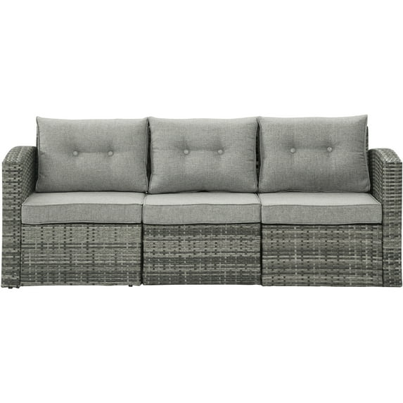 Cozyhom Gray Wicker Rattan Patio Sofa, 3 Seats Outdoor Furniture with Gray Cushions
