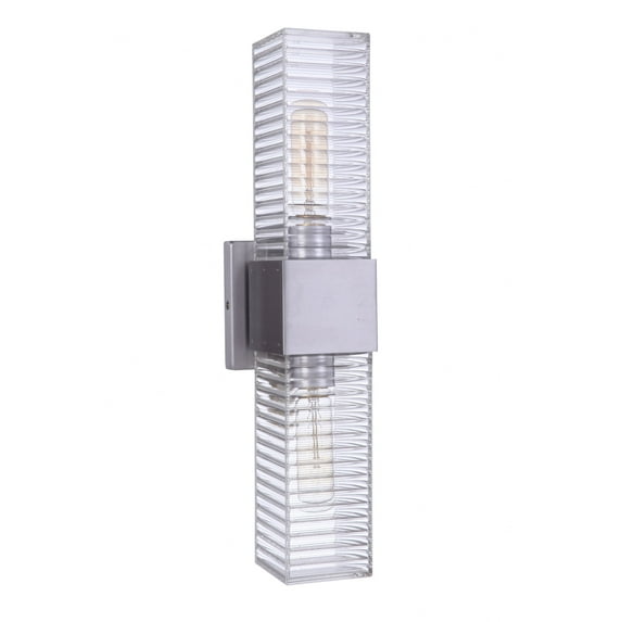 Collection: Ridge, Material: Glass, Finish Color: Satin Aluminum, Width: 4.5", Height: 18", Length: 4.5", Depth: 4.4882", Backplate Width: 4.5", Backplate Length: 4.5", Lamping Type: Incandescent, Number Of Bulbs: 2, Wattage: 60 Watts, Dimmable: No, Moisture Rating: Wet Rated, Desc: The versatile Ridge collection with it's linear design featuring 2 lights captured in textured clear glass can be mounted vertically or horizontally. Outdoor rated, the Ridge is ideal for indoor or outdoor applications. Crafted with our guaranteed five-year finish, this collection will deliver illuminating style for years to come. Back Plate Height: 4.50 / Back Plate Width: 4.50 / Shade Included: Yes. , - - Ridge - 2 Light Outdoor Wall Lantern In Contemporary Style-18 Inches Tall and 4.5 Inche Wide-Satin Aluminum Finish -