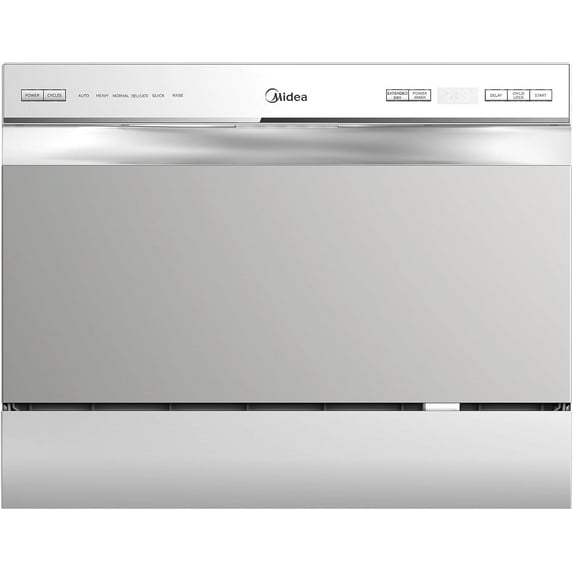 Midea Countertop Dishwasher, 6 Place Settings, 8 Wash Programs, Power Wash, Easy Install, Silver