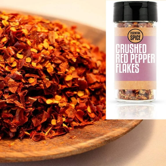 Essential Spice Red Pepper Flakes are made from a mix of seeds and flesh of spicy peppers from the capsicum annum family. Essential Spice Red Pepper Flakes can be used to top pizza, stir-fries, pastas, and many other dishes. They can also be stirred into sauces to add heat.