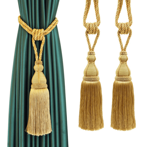 15 out of 5 Stars. 1 reviewsShipping, arrives in 3+ daysDeago 2 Pack Curtain Tiebacks Tassel Drapery Tie-Backs Rope Handmade Holdbacks Home Office Hotel Decorative (Gold) $12.59
